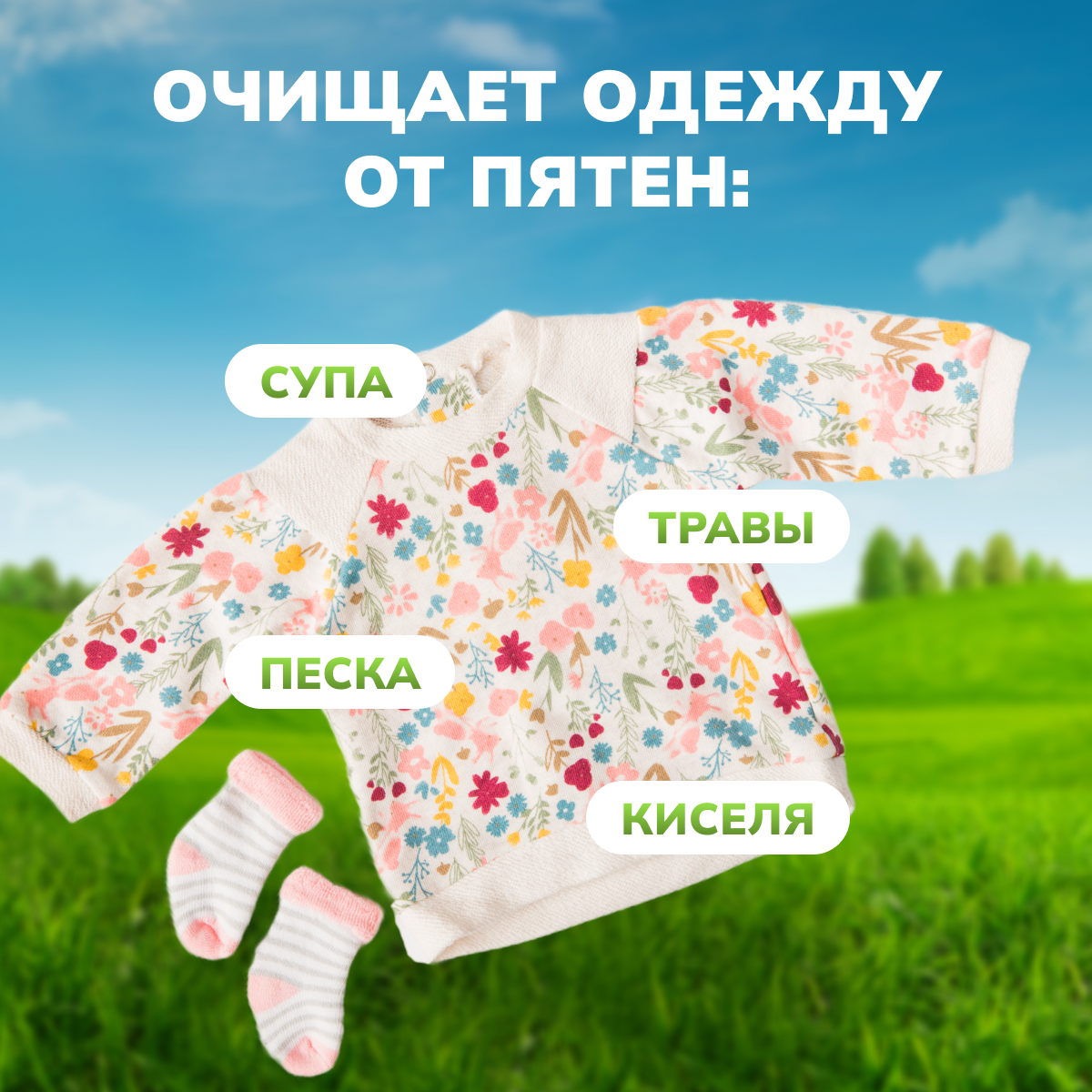 | Плюсы: | 100% натуральный состав. Без всяких фосфатов, безопасно для вещей малыша. |