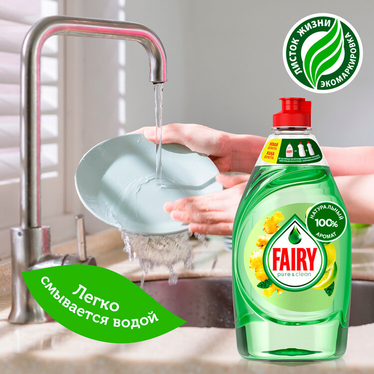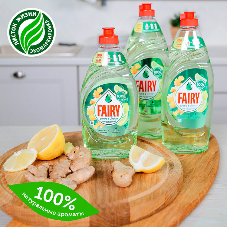 Средство для мытья посуды Fairy Pure & clean, Бергамот и имбирь