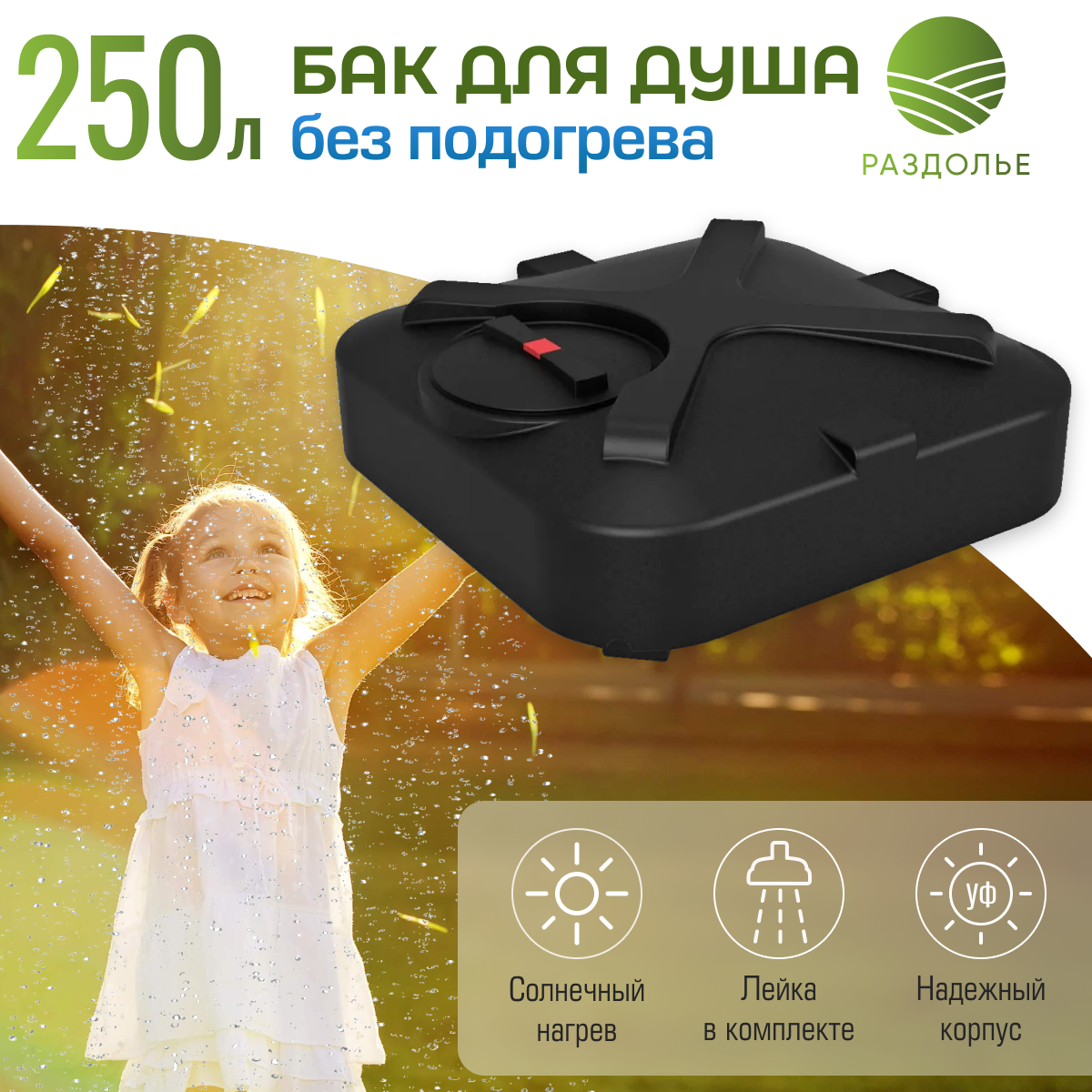 Бак для душа Rostok 250 л с лейкой 201.2500.899.3 интересное: