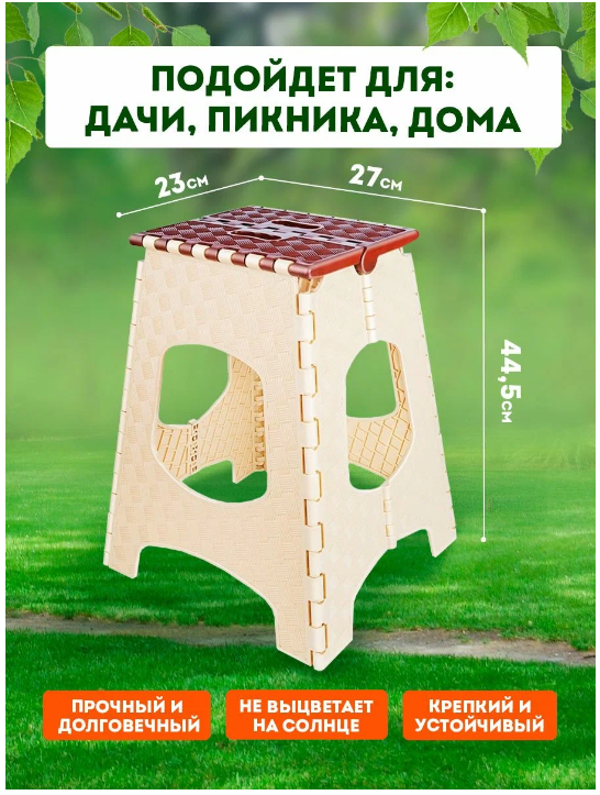 Табурет малый elfplast "Мультистул" складной (бежевый/коричневый, складной), 28 см 113