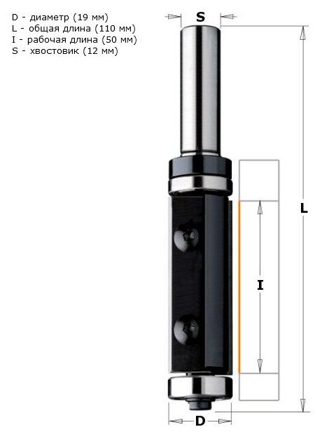 CMT Фреза обгонная верн.+нижн. подш. , смен.ножи HM S=12 D=19x50x110 Z2 RH 657.993.11B интересное: