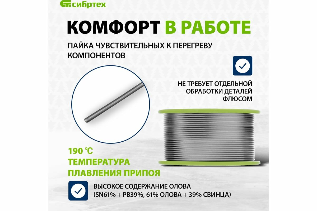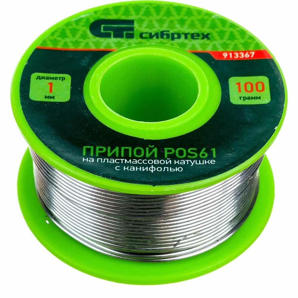 Припой с канифолью Сибртех D 1 мм, 100 г, POS61, на пластмассовой катушке 913367