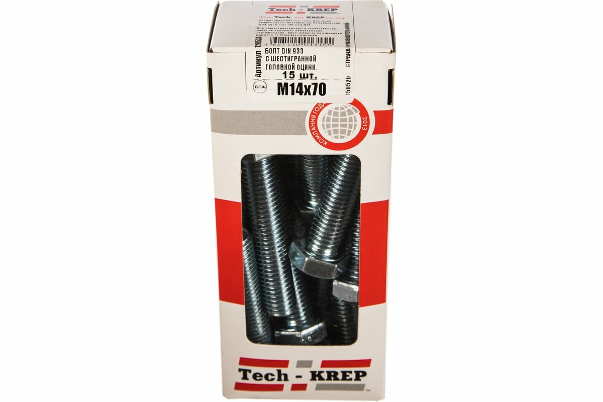 Купить Tech-Krep Болт DIN933 с шестигранной головкой оцинк. М14x70 15 шт - коробка с ок. Tech-K 126534