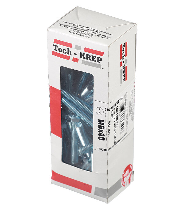 Tech-Krep Болт DIN933 с шестигранной головкой оцинк. М6x40 50 шт - коробка с ок. Tech-Kr 105204