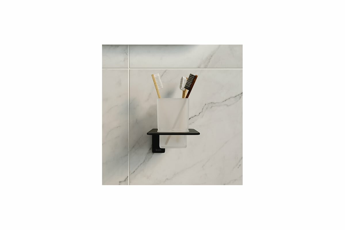 Стакан для ванной Iddis Slide с держателем стекло матовый/металл черный (SLIBSG1i45)