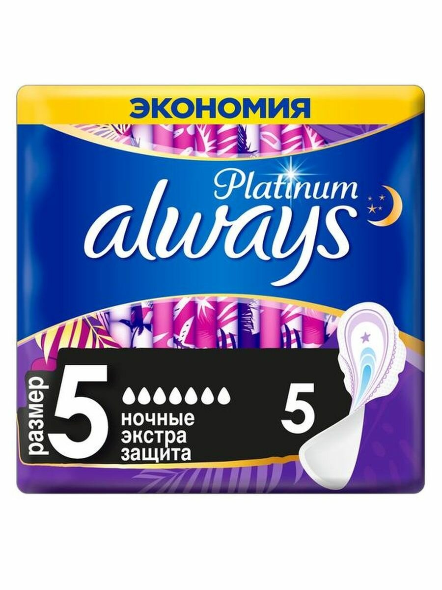 Always Platinum ночные экстра защита прокладки женские размер 5, капли 7, прокладок 5
