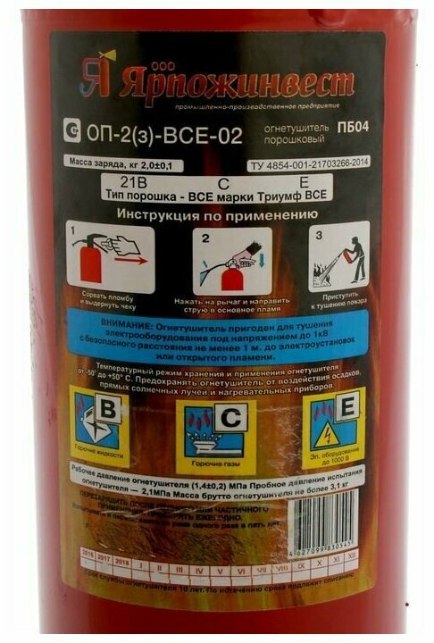 Порошковый огнетушитель Ярпожинвест ОП-2(з)-BCE-02 автомобильный интересное: