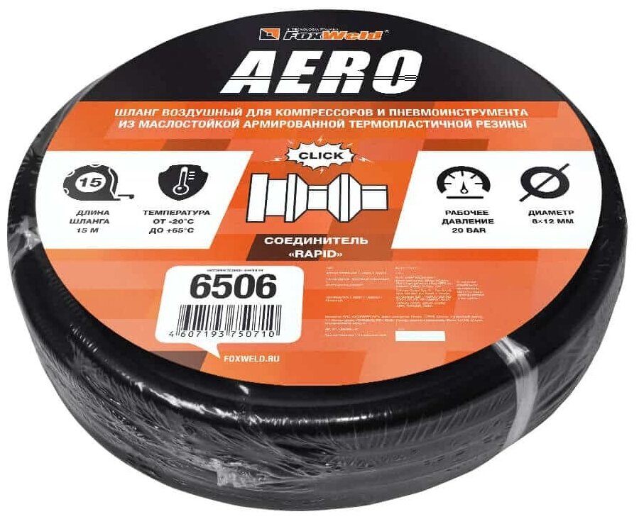 Шланг воздушный FoxWeld AERO, резина 6х12 мм, 20 бар, 15 м интересное: