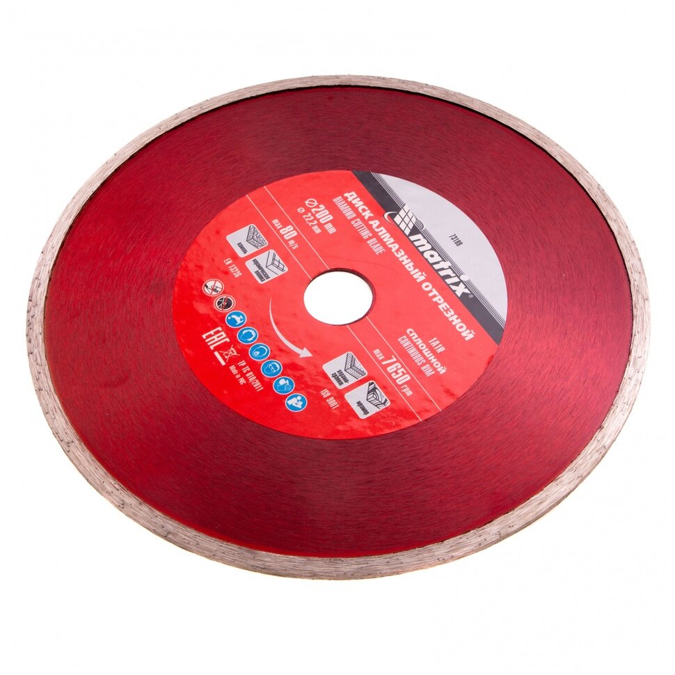 Диск алмазный отрезной сплошной 200 х 22 2 мм мокрая резка MATRIX 73189