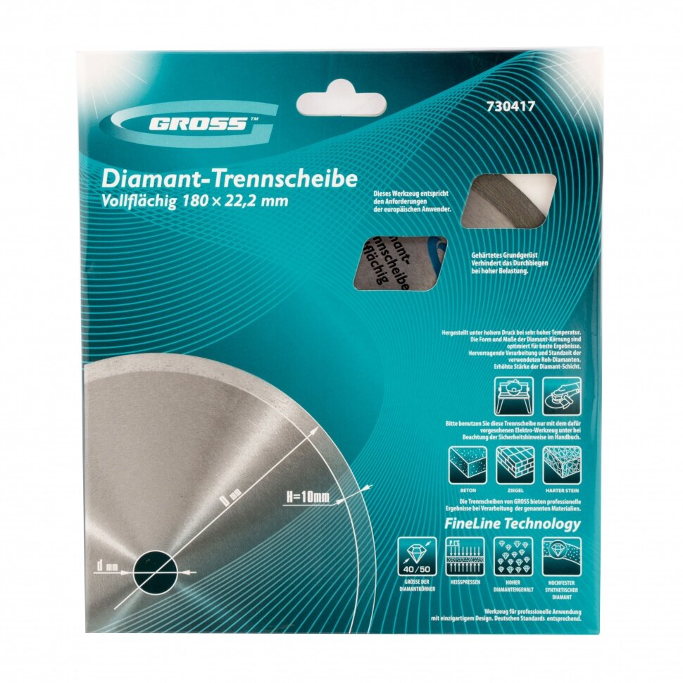 Диск алмазный Gross 730417, ф180х22,2мм, сплошной, мокрое резание Gross 3803154 .