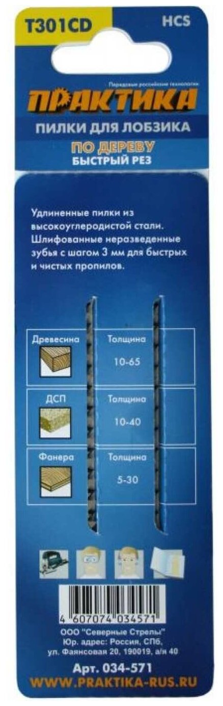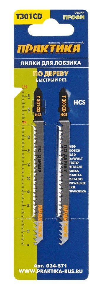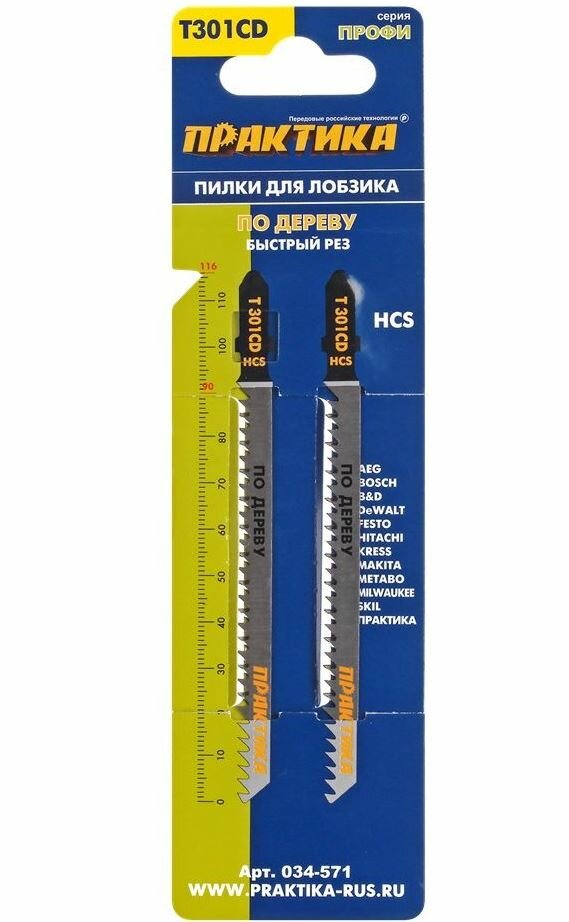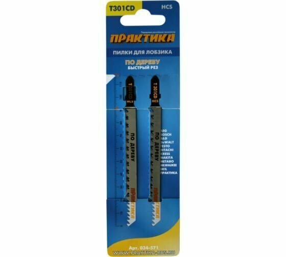 Пилки для лобзика по дереву, ДСП ПРАКТИКА тип T301CD 116 х 90 мм, быстрый рез, HCS (2шт.) интересное: