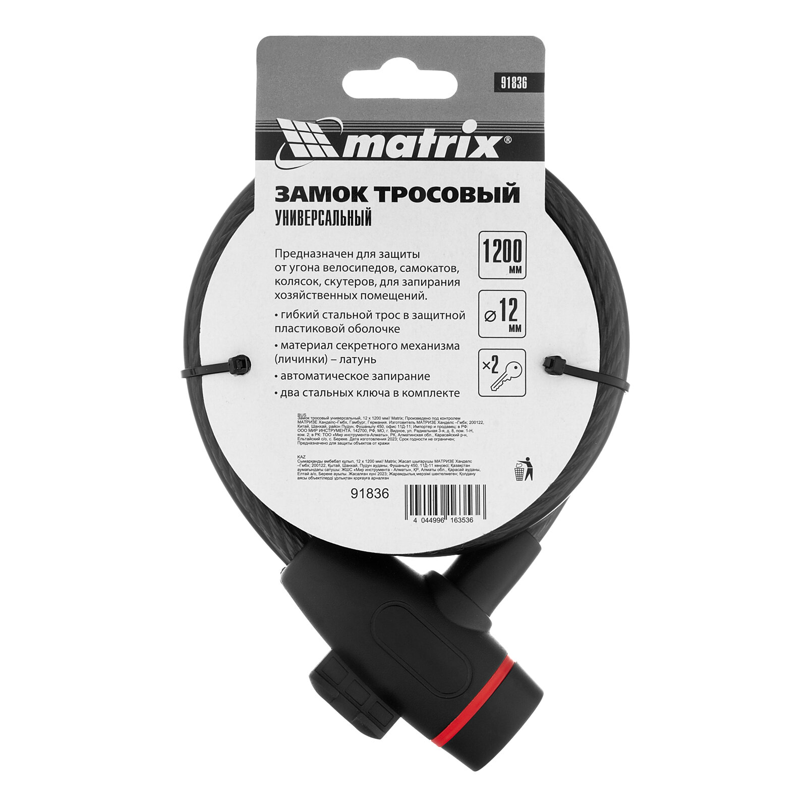 Замок тросовый универсальный, 12 х 1200 мм// Matrix 91836 . интересное: