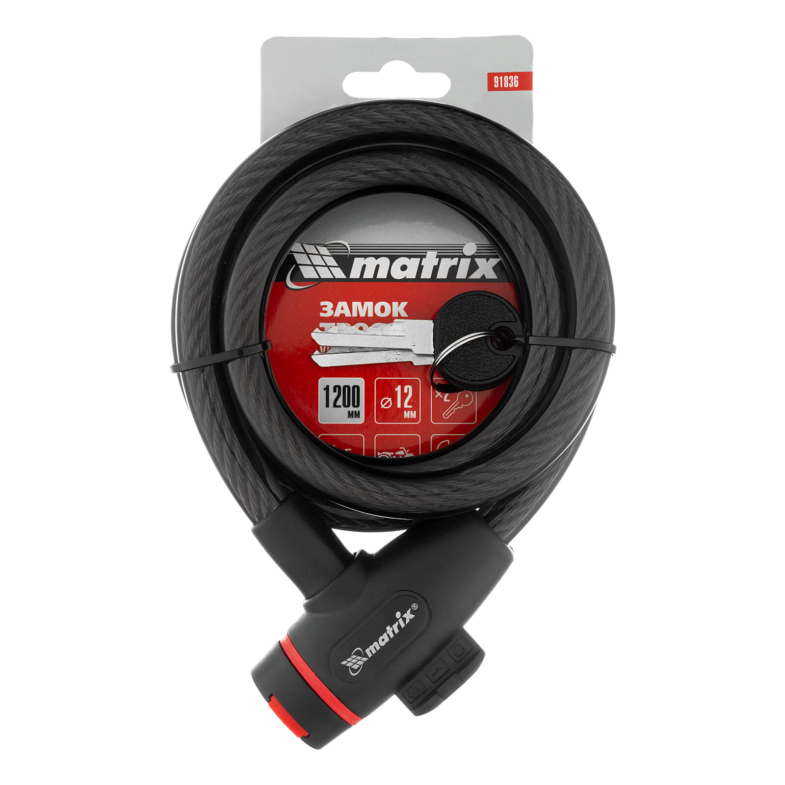 MATRIX Замок тросовый универсальный, 12 х 1200 мм Matrix, ( 91836 )