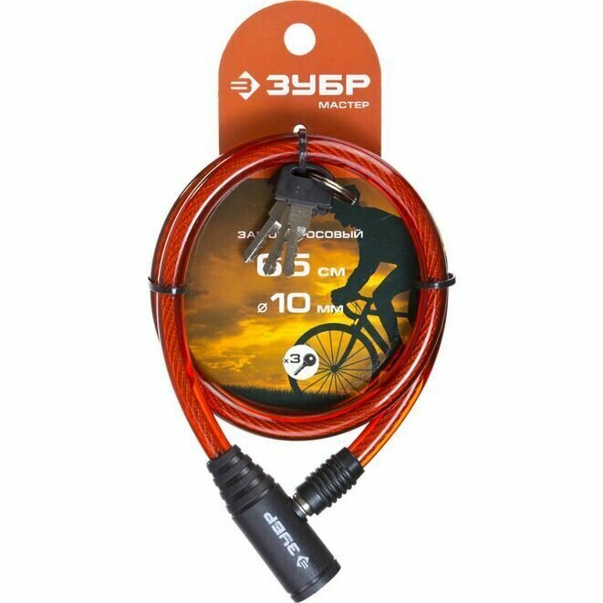 ЗУБР 650 мм, d 10 мм, 3 ключа, тросовый замок (37263-65)