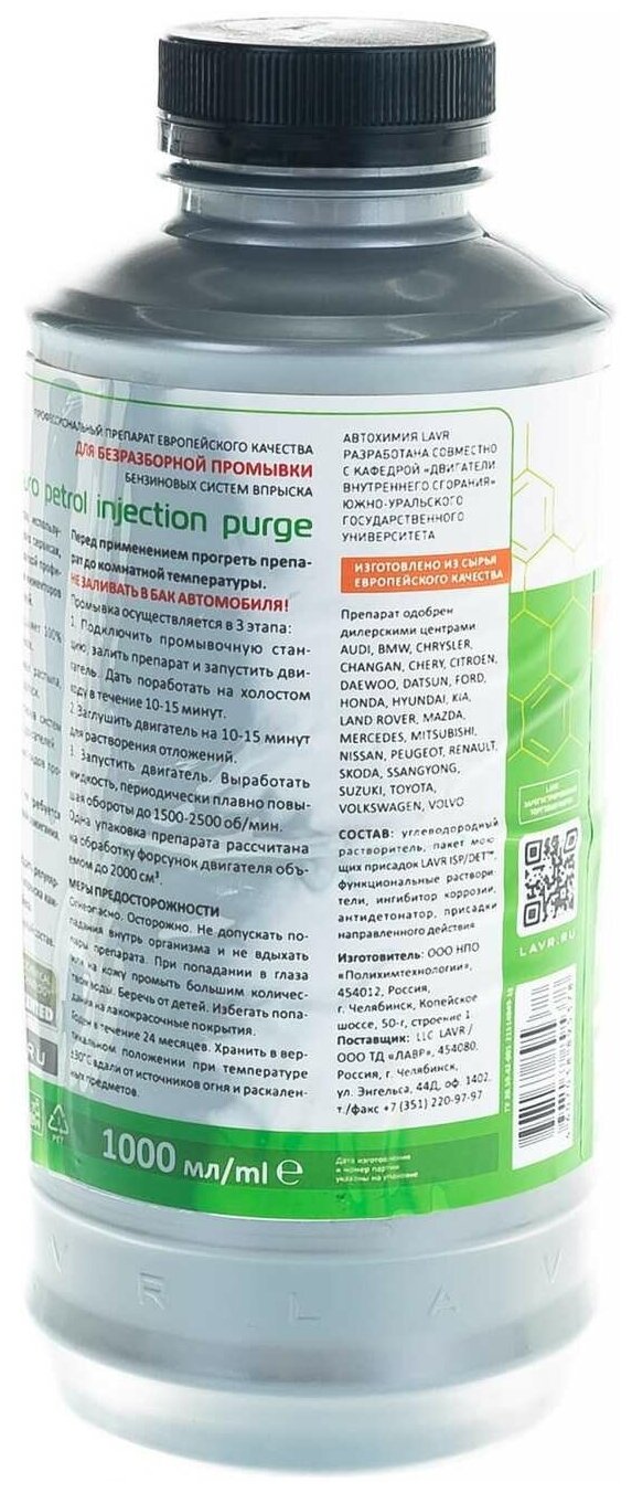 LAVR / ln2007 / Промывка систем впрыска бензиновых двигателей ML101 EURO LAVR Petrol injection purge 1000мл