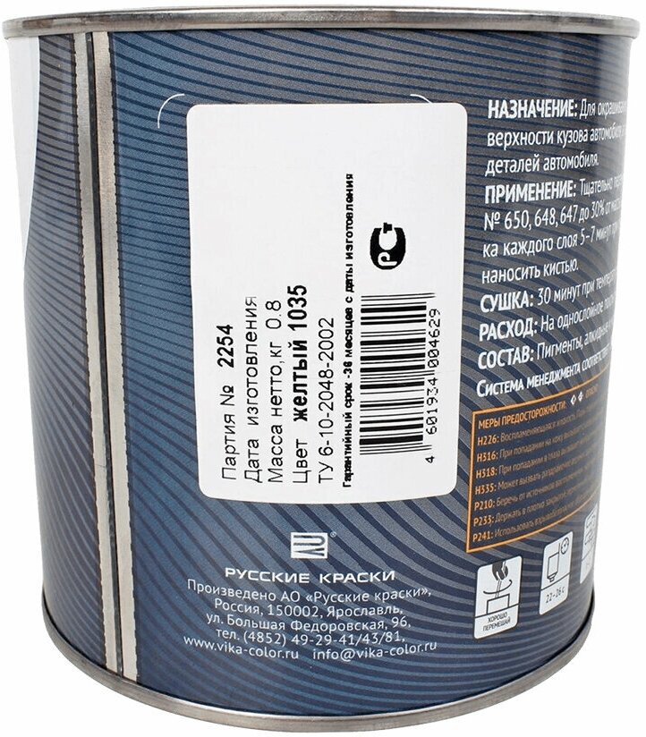 Краска банка 1035 Желтая МЛ1110 Vika 0,8кг VIKA VML11101035