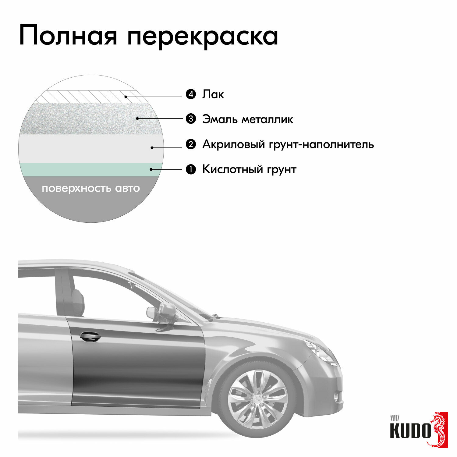 KUDO KU41495 Эмаь автомобиьная ремонтная метаизированная унный свет 495 520 м