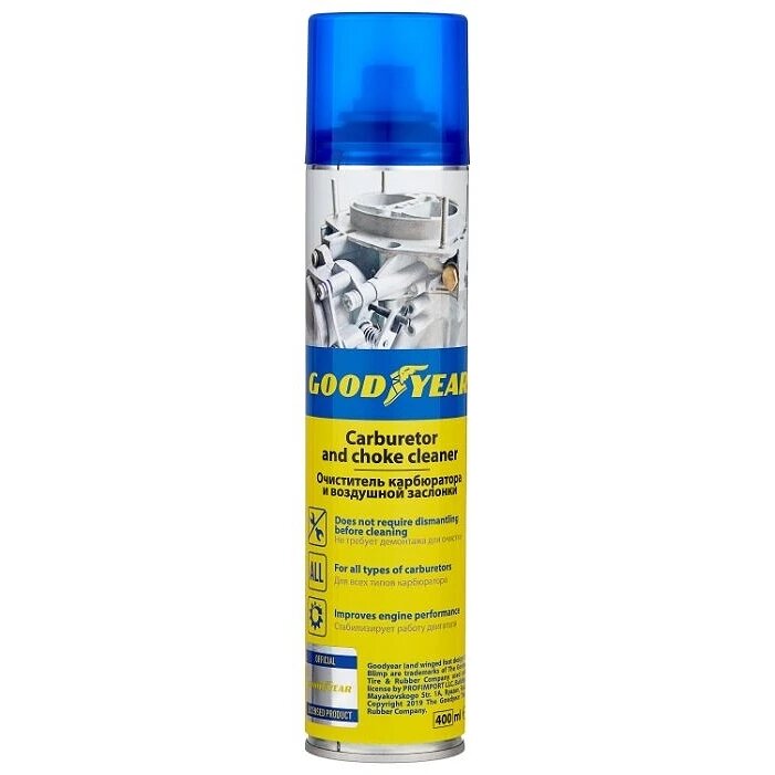 GOODYEAR GY000705 Очиститель карбюратора 400мл - эффективно и без демонтажа очищает элементы карбюратора и воздушной заслонки от всех видов углеродных отложений, аэрозоль 1шт