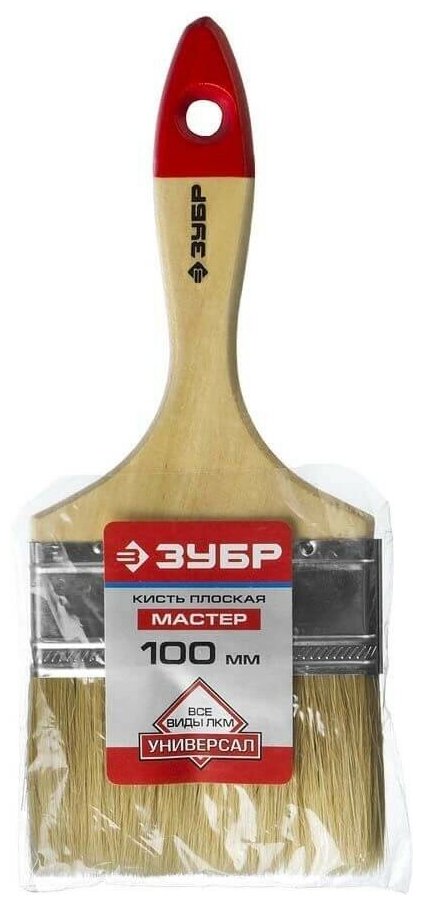 ЗУБР Универсал 100 мм, 4'' светлая натуральная щетина, деревянная ручка, Плоская кисть, мастер (4-01003-100)