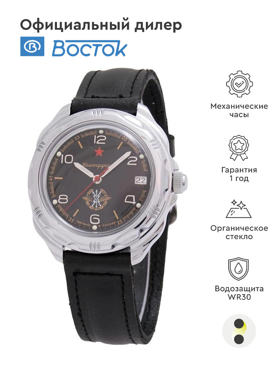 Мужские наручные часы Восток Командирские 211296-classic, натуральная кожа, черный
