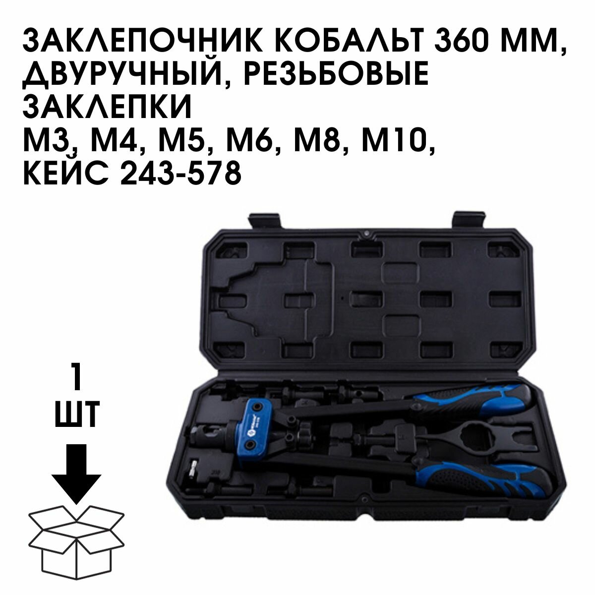 Заклепочник кобальт 360 мм, двуручный, резьбовые заклепки M3, M4, M5, M6, M8, M10, кейс интересное: