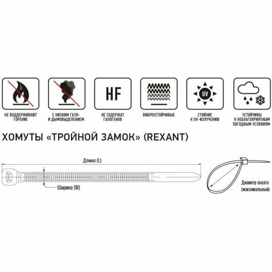 Ниже Вы можете прочитать отзывы на Хомут-стяжкa нейлоновый с тройным замком REXANT 350x4.8 мм, белый, упак. 100 шт., ознакомится с подробными характеристиками, посмотреть интересные обзоры и фотографии на Хомут-стяжкa нейлоновый с тройным замком REXANT 350x4.8 мм, белый, упак. 100 шт..
