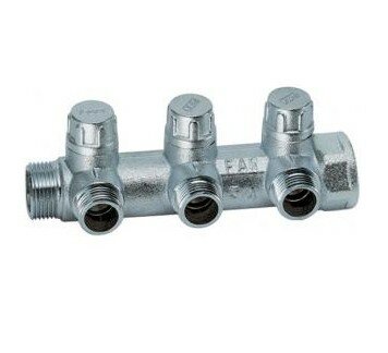 Запорный коллектор распределительный 3/4" ВР-НР с 3 отводами 1/2" НР, хром FAR (FK 3870 3412) интересное: