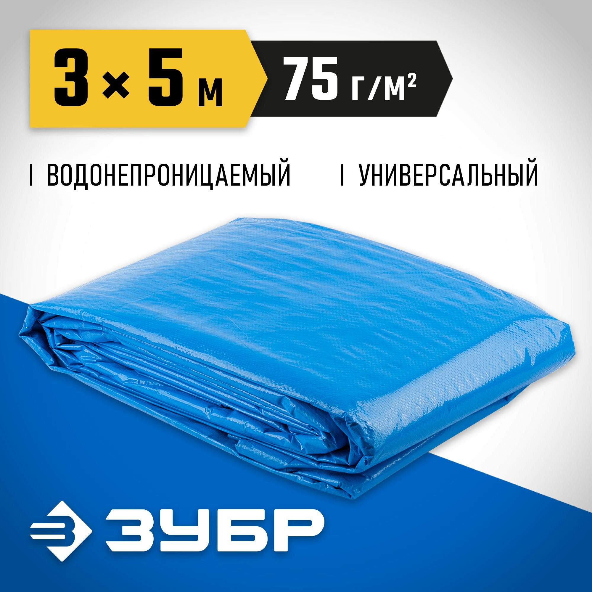Тент-полотно ЗУБР "Мастер" универсальный, из тканого полимера плотностью 75 г/м3, с люверсами, водонепроницаемый, 3мх5м 12550-03-05
