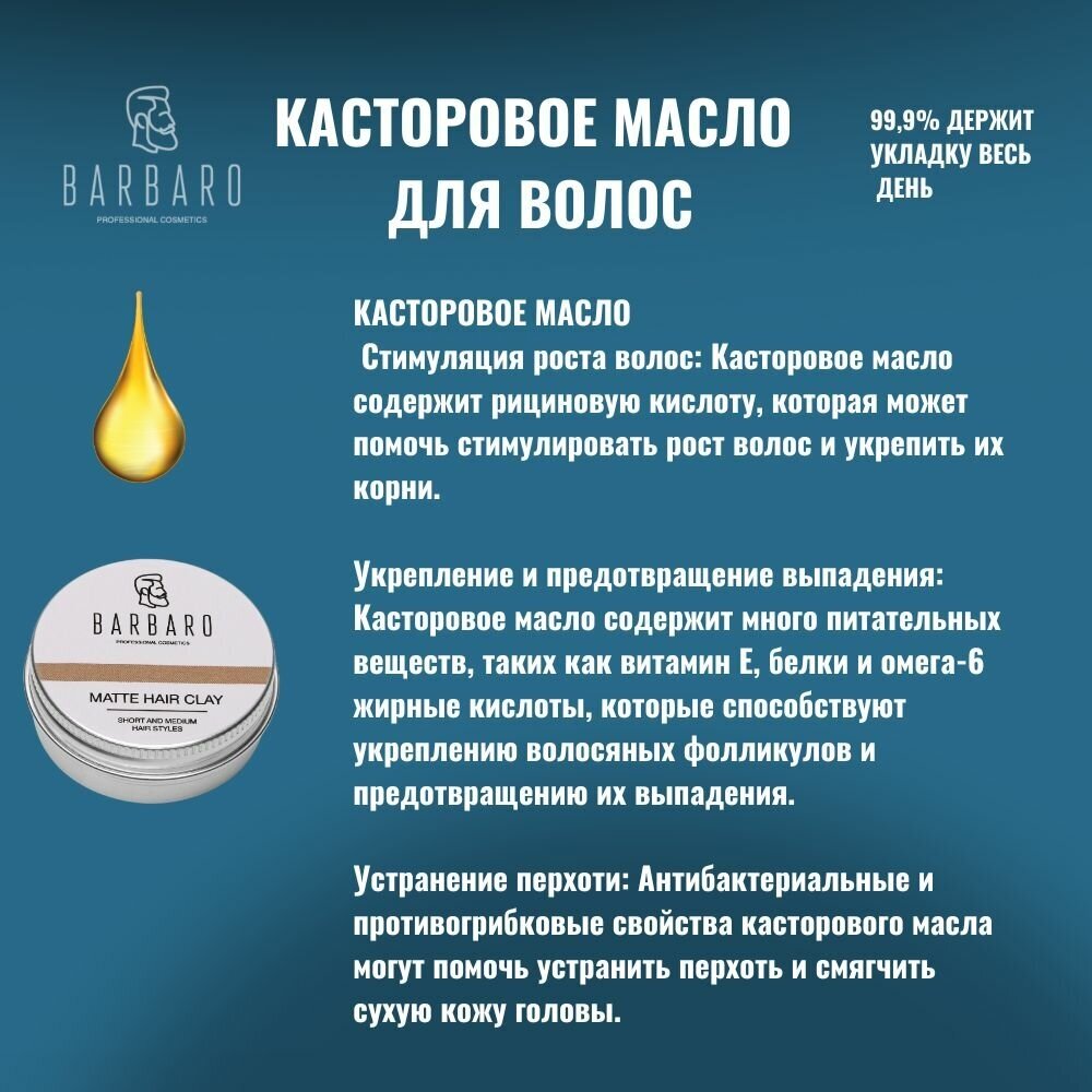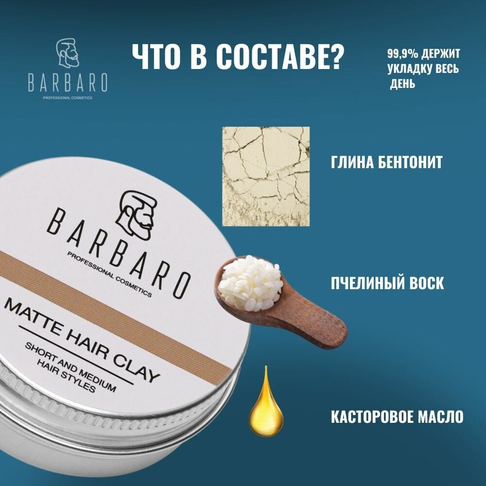 Barbaro Матовая глина для укладки волос, сильная фиксация, 100 г интересное: