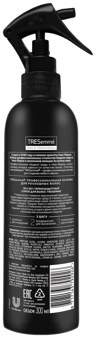 Термозащитный спрей для волос Tresemme Thermal Creations 300 мл интересное: