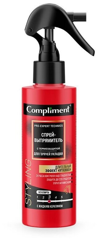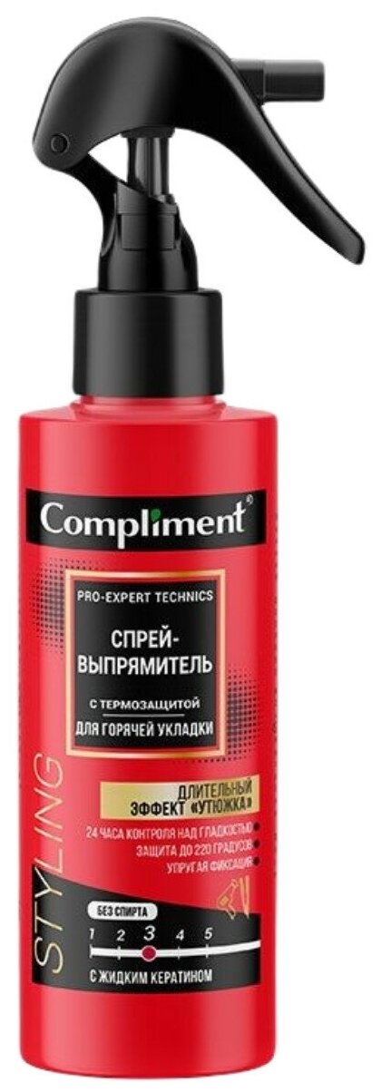 Compliment Pro-Expert Technics Спрей-выпрямитель с термозащитой для горячей укладки, с жидким кератином (3/5), пэт спрей 200 мл