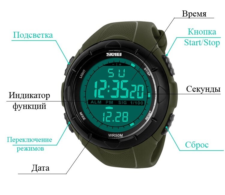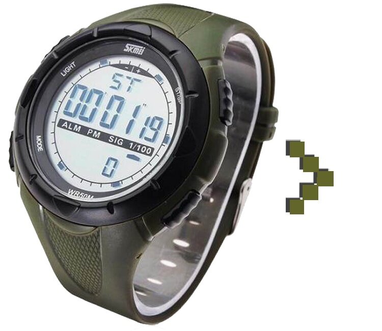 Часы наручные мужские электронные спортивные Skmei противоударные, водонепроницаемые, цвет оливковый