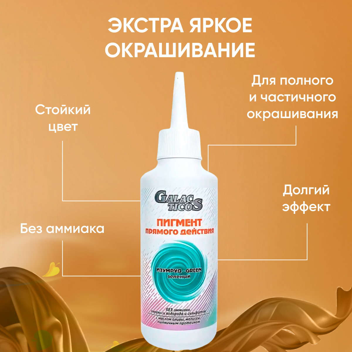 СохранитьGALACTICOS Краситель прямого действия Color direct act, изумруд-green зеленый, 150 мл интересное: