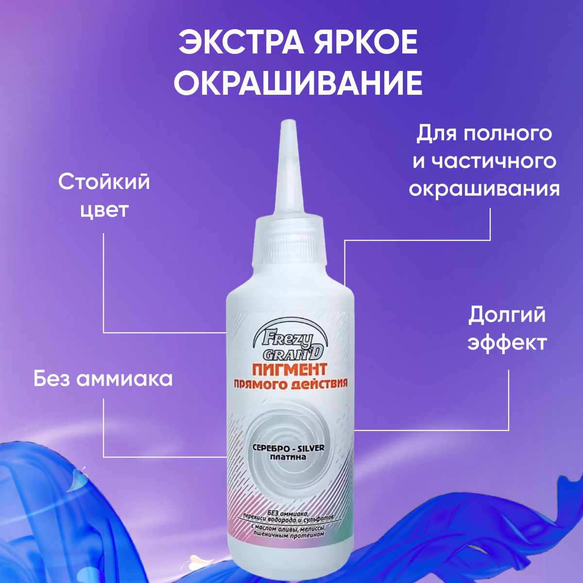 Пигмент прямого действия GALACTICOS для волос Серебро Платина 150 мл