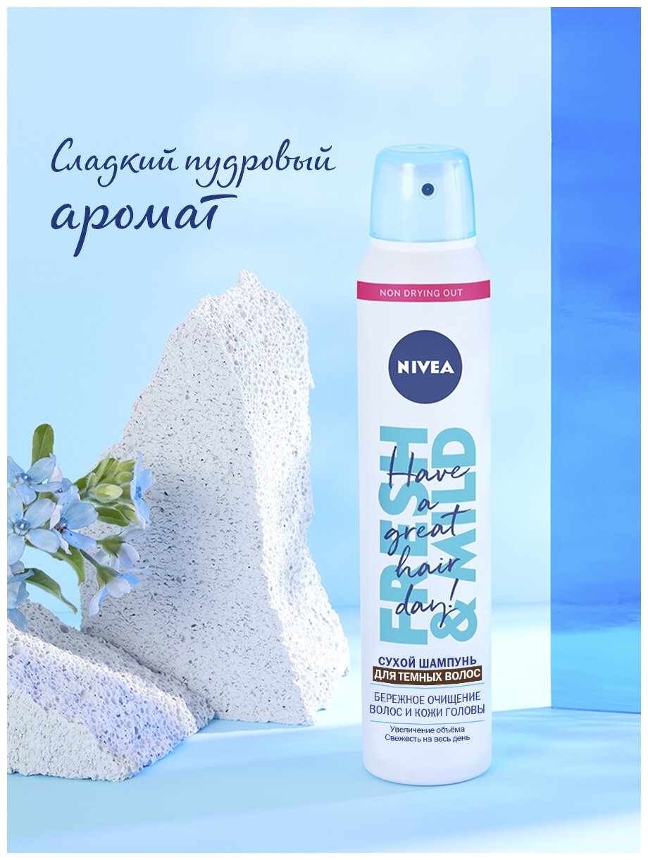 Сухой шампунь для темных волос Nivea с эффектом объема, против жирного блеска, 200 мл. интересное:
