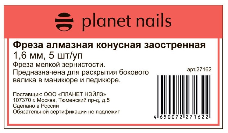 Planet Nails Фреза алмазная конусная заостренная 1,6 мм, 5 шт./уп, интересное: