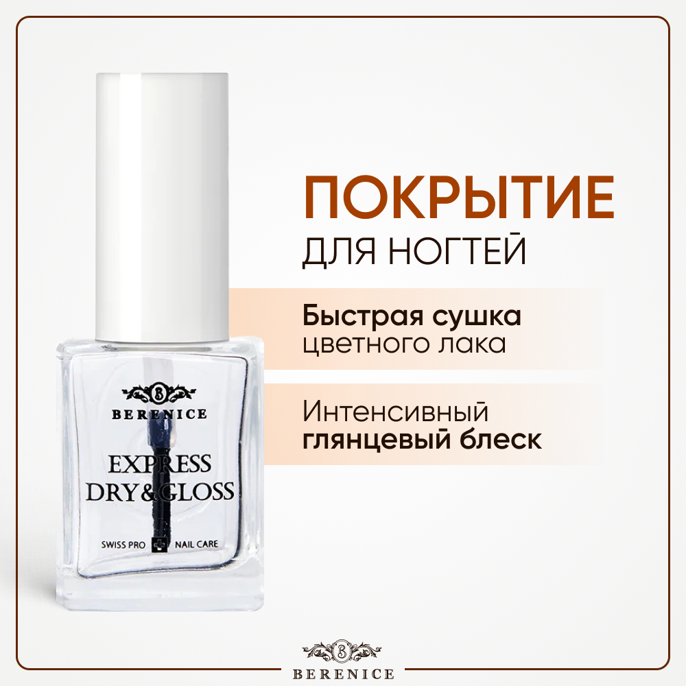 Верхнее покрытие для ногтей 2 в 1: сушка и защита, прозрачное глянцевое Express dry&gloss BERENICE интересное: