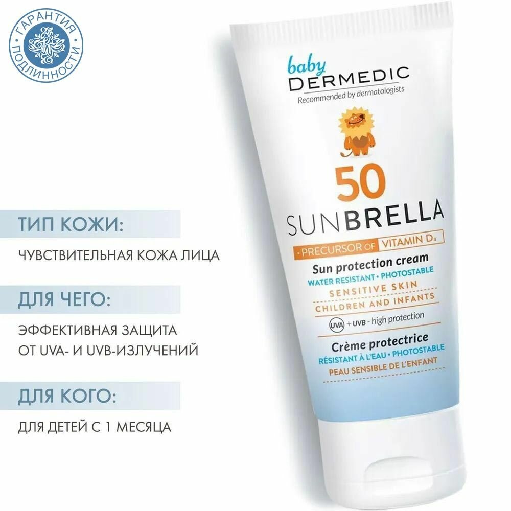 Dermedic Sunbrella Baby Детский солнцезащитный крем для лица SPF50, 50 г 1 шт