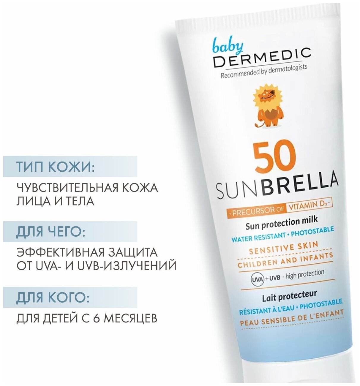 Дермедик санбрелла бэби Солнцезащитное молочко для детей SPF 50 100 мл