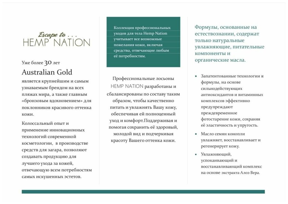 Питательный лосьон для тела Australian Gold Hemp Nation Sea Salt & Sandalwood (535 мл) с комплексом усиления оттенка загара интересное: