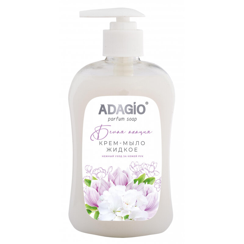 Мыло-крем жидкое Адажио "Белая акация", 500мл, флакон с дозатором, 1шт. (174237)