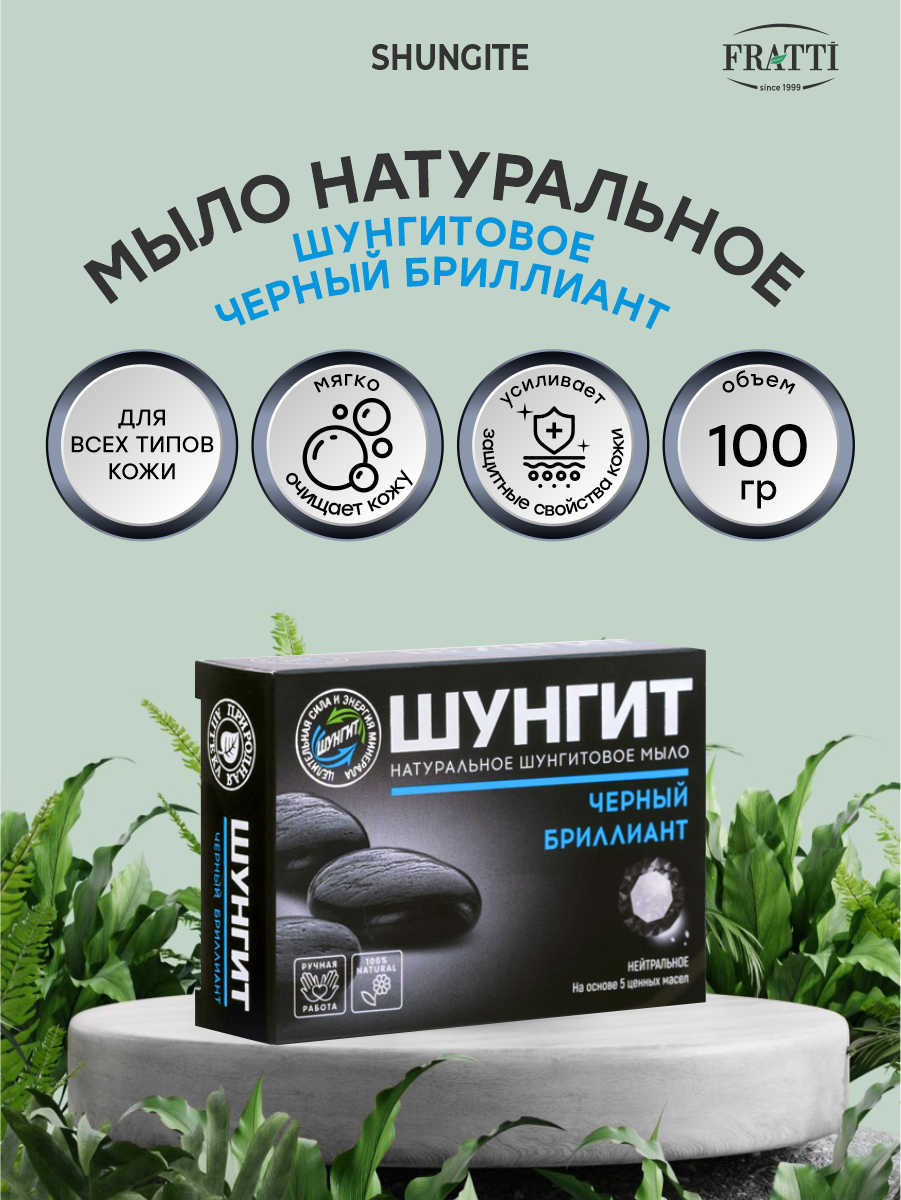 Шунгит Натуральное шунгитовое мыло «Черный бриллиант», 100г интересное: