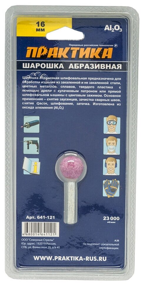 Шарошка абразивная ПРАКТИКА оксид алюминия, шарообразная 16 мм, хвост 6 мм, блистерблистер интересное: