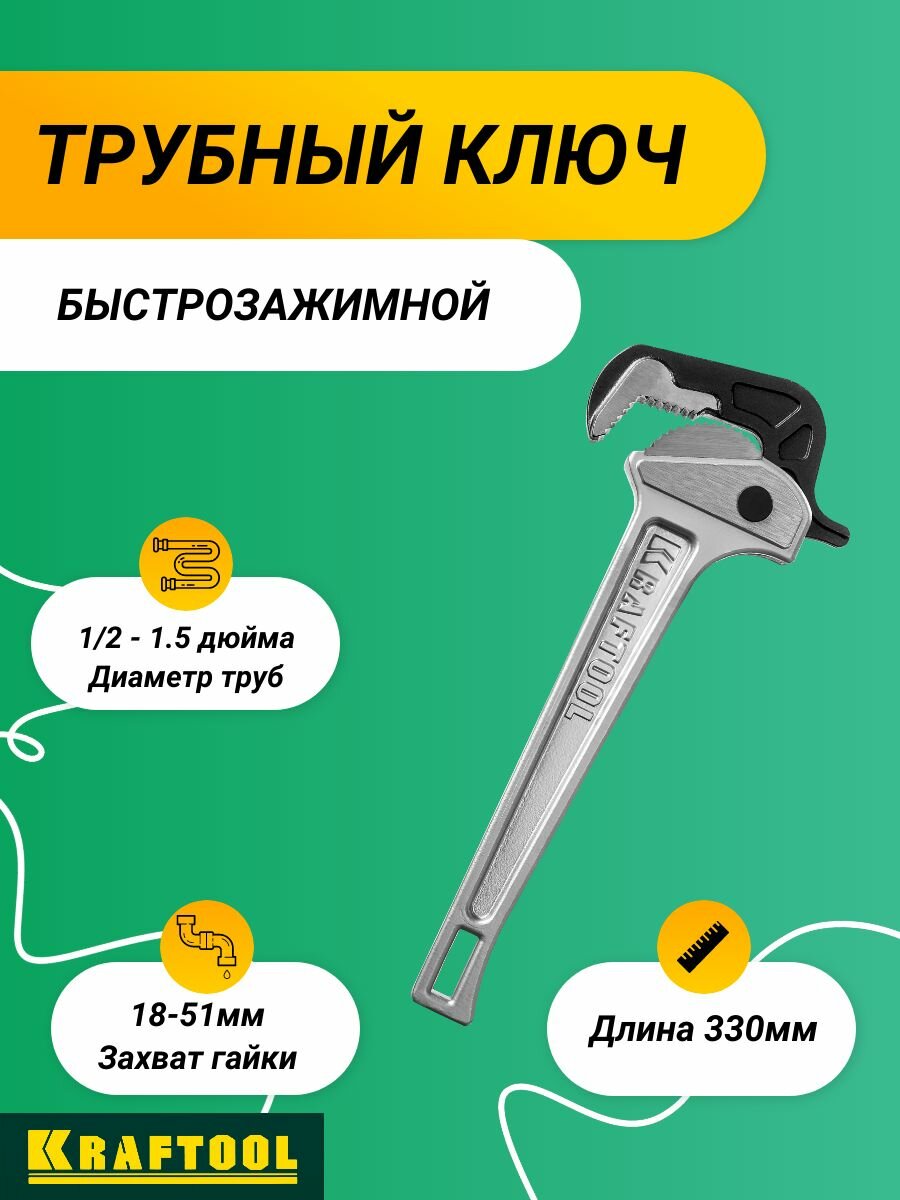 KRAFTOOL MASTERGRIP, 1.5″, 18 - 51 мм, 330 мм, быстрозажимной трубный ключ (27365-14)