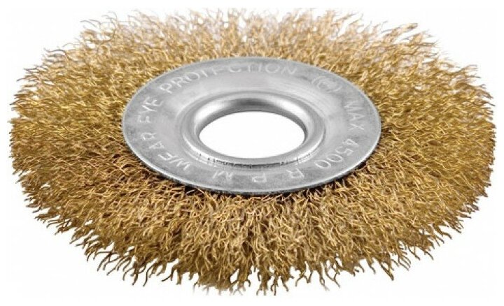 Купить Корщетка дисковая прямая, посадочный диаметр 22,2 мм, латунированная волнистая проволока 150 мм