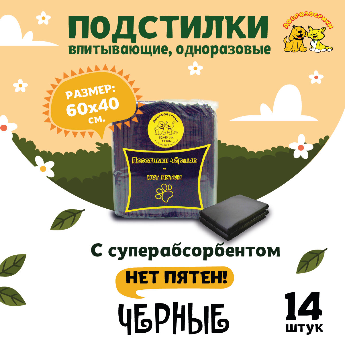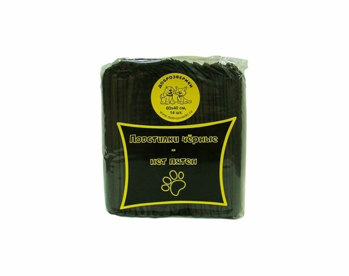 Доброзверики пеленки впитывающие для животных с суперабсорбентом черные 60 х 40 см (14 шт)