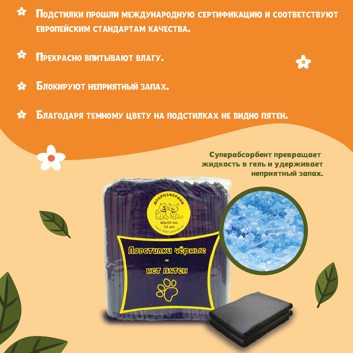 Пеленки для животных одноразовые впитывающие Доброзверики с суперабсорбентом 60х40см. 14шт. интересное: