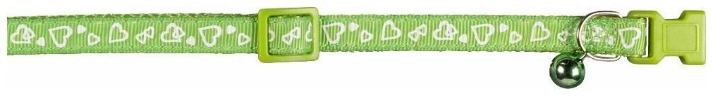 Купить Ошейник NOBBY "Сердечки" для кошек бубенчик. безопасн.замок зеленый