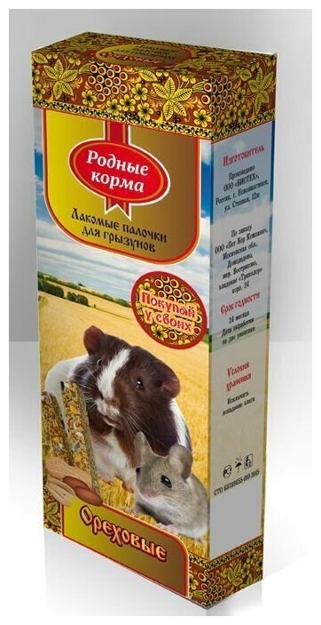 Ниже Вы можете прочитать отзывы на Лакомство родные корма Зерновые палочки для грызунов с орехами 90г 146.022, ознакомится с подробными характеристиками, посмотреть интересные обзоры и фотографии на Лакомство родные корма Зерновые палочки для грызунов с орехами 90г 146.022.