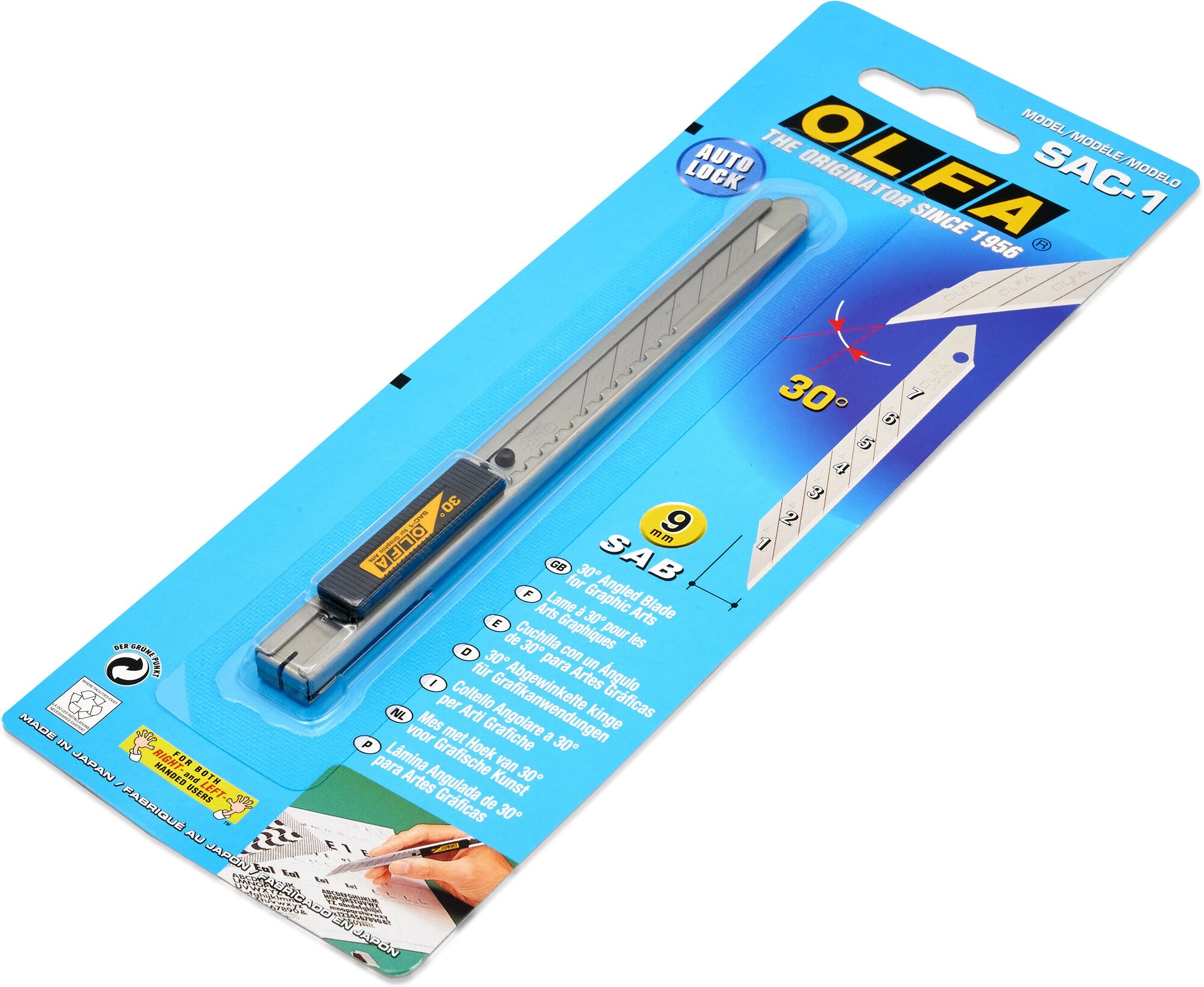 Нож с сегментированным лезвием Olfa OL-SAC-1, для графических работ, корпус из нержавеющей стали, 9мм